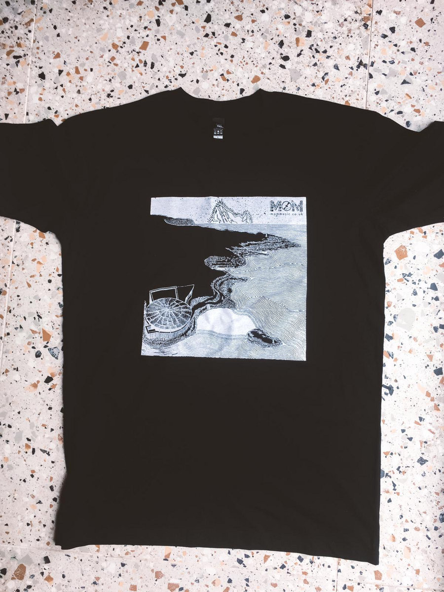 This t-shirt features the illustration made by local artist Edward Meziani of the iconic location in Ibiza that is also the cover of our second EP, "Ashram"